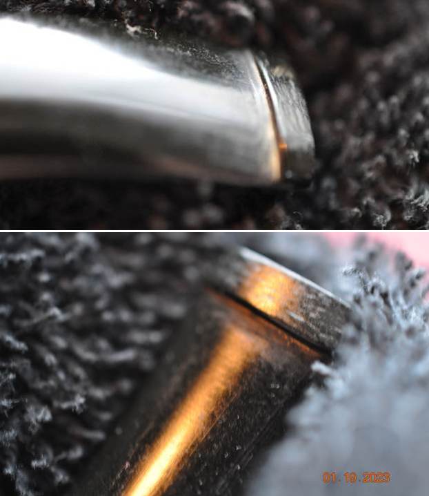 I used a topping board with 220 grit sandpaper to try and flatten the remaining crown on the shank band/ferrule.