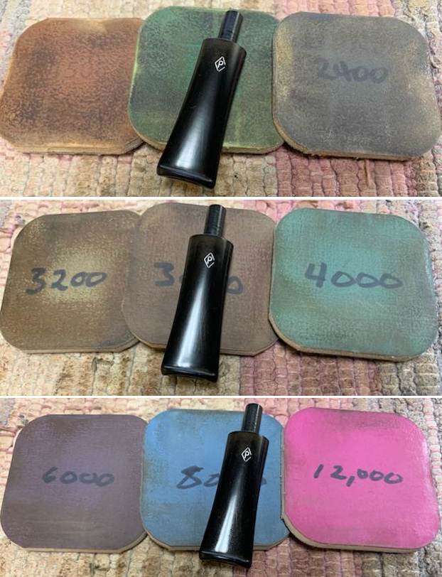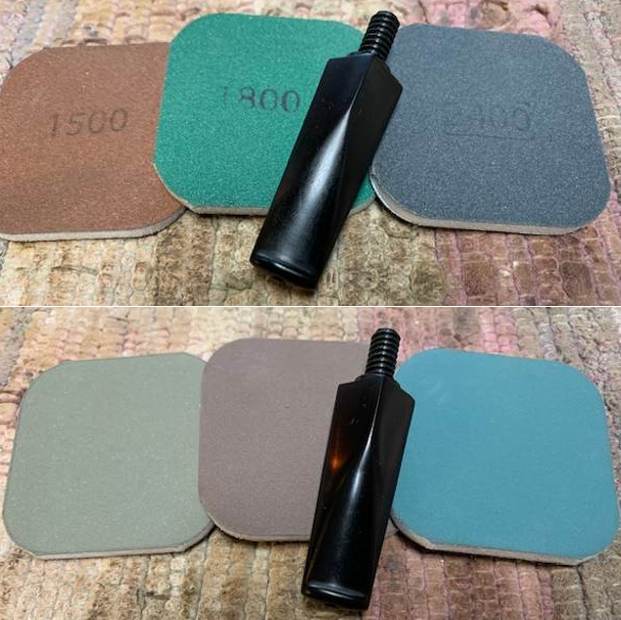 Once rim top was reshaped and reworked I needed to blend them into the rest of the briar. I polished the briar with micromesh sanding pads. I choose to dry sand the briar rather than wet sand it. Again it is a matter of personal preference. I prefer to use the pads dry and find they work very well on the briar. I sand with each pad (9 in total) and group them by threes for ease of reference. I also work over the plateau areas at the same time. I wipe the bowl down after each pad with a damp cloth to remove the sanding debris and check the briar. I love seeing the developing shine on the briar as I move through the pads which is why I include so many photos of this step.