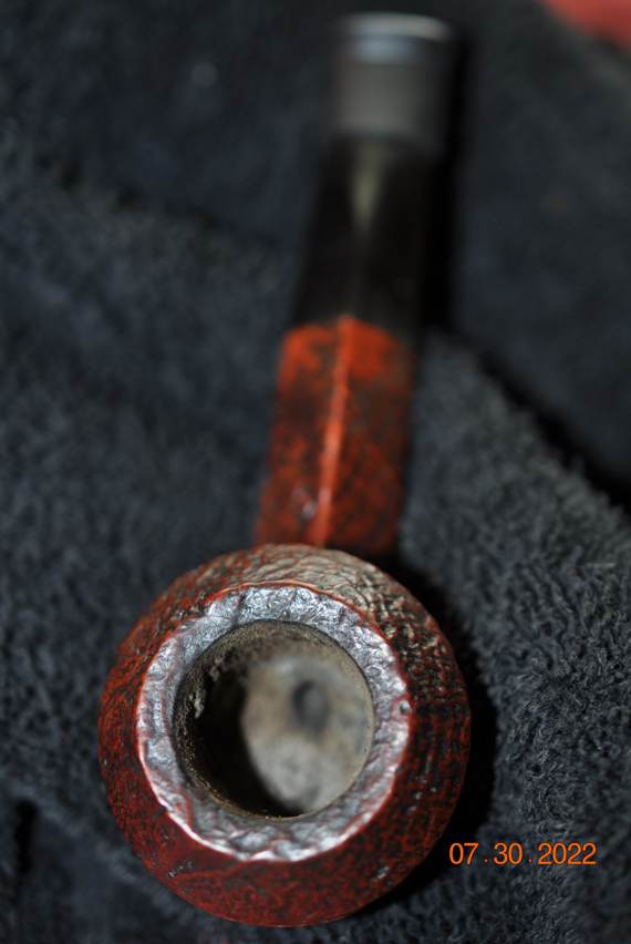 I carefully went over the bowl and rim top to get a sense of what is happening there. In this case once the lava was removed damage to the edge and top was revealed. Originally I thought it looked like reaming damage but I don’t think so as I examine it closely. I think it is actually burn damage to the edge that extends around the inner edge though it is heavier at the front and back of the bowl. The rim top also shows some damage. It is clean but will need to be worked on to bring it back to normal. I also go over the stem carefully. There were no tooth marks or dents in the stem. I could not see any sign of remaining CP stamping on the stem so no real clue as to whether it is original or a replacement. I took photos of the rim top and stem sides to show as best as I can what I see when I look at them.