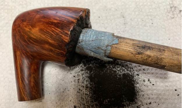 I fit the stem in the shank to take get measurements of the pipe. When I finished I removed the stem from the shank the tenon shattered in the shank and was stuck. This is great – just what I needed. Now I would need to replace the tenon and refit it.
