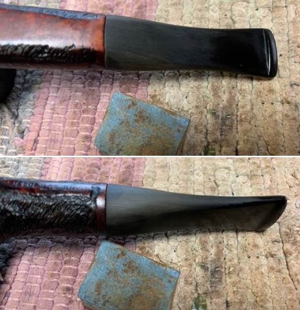 I continued polishing the stem with micromesh sanding pads – 1500-12000 grit sanding pads and water to wet sand the stem. I wiped it down after each sanding pad with Obsidian Oil on a cotton rag after each sanding pads. But I find it does two things – first it gives some protection to the stem from oxidation and second it give the sanding pads bite in the polishing process.