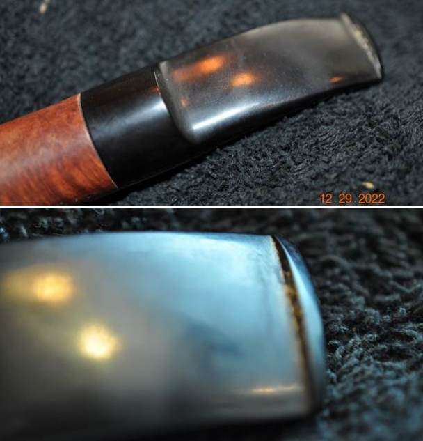 I carefully went over the bowl and rim top to get a sense of what is happening there. In this case once the rim top and edges were cleaned the rim cap and edges showed no damage. There was also no damage to the rustication or the inner edge of the bowl. I also go over the stem carefully. The fit to the shank is snug and the transitions are smooth. There were some light tooth marks and chatter on the surface of the stem and the button. I took photos of the rim top and stem sides to show as best as I can what I see when I look at them.