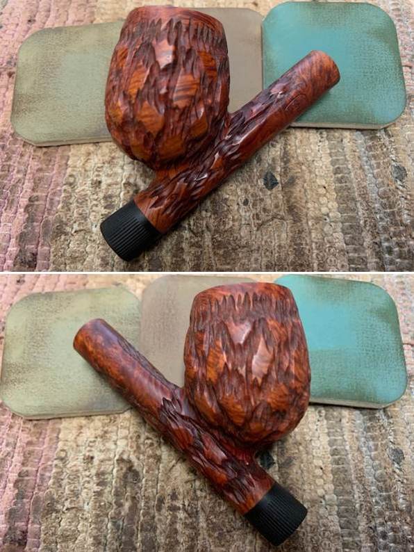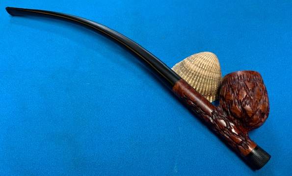 Overall my impressions of this pipe is that it is a very unique and interesting Cavalier style Churchwarden like nothing I have seen before. The rustication is a combination of smooth chunks and cross hatched trails around the bowl and shank. There are smooth panels on the sides for the stamping and around the cavalier and shank end. I think that once it is cleaned up it will be another pretty pipe.
