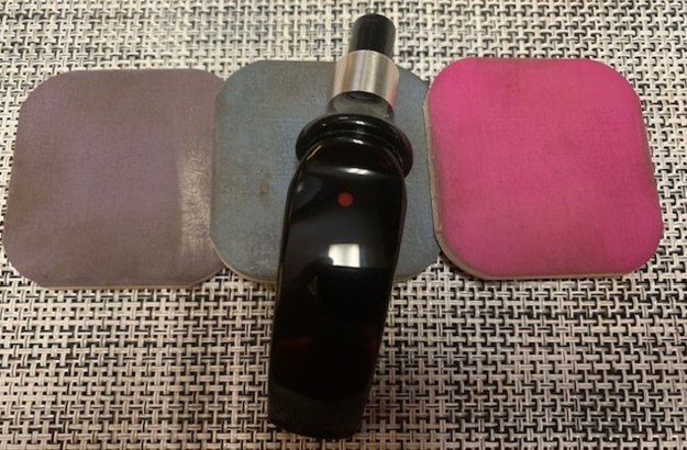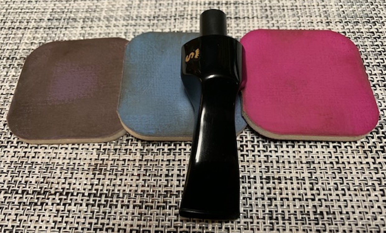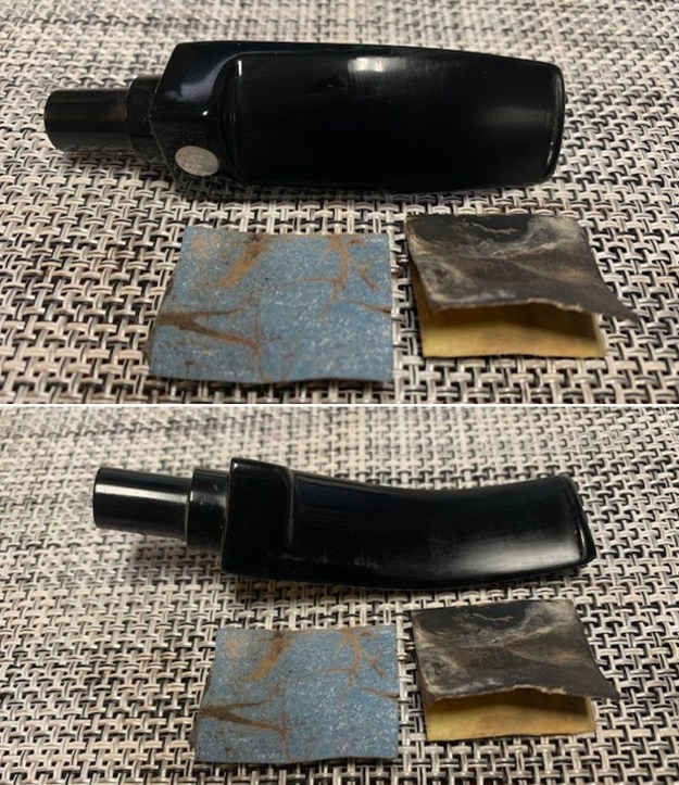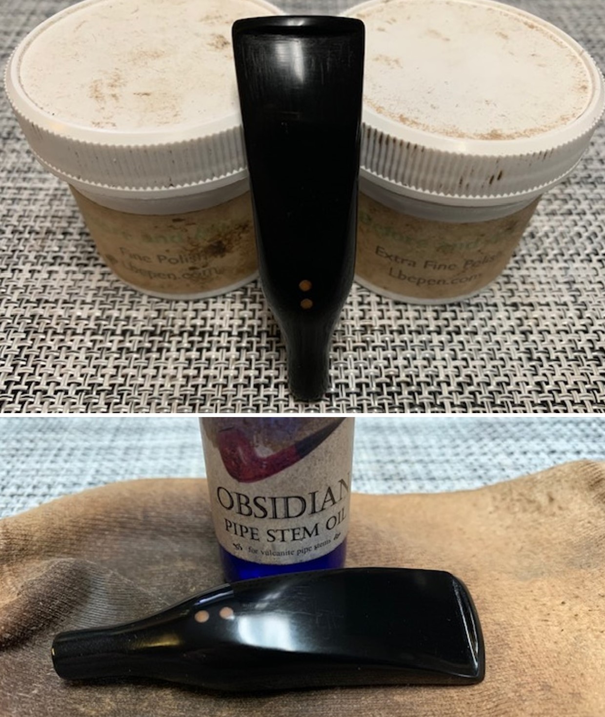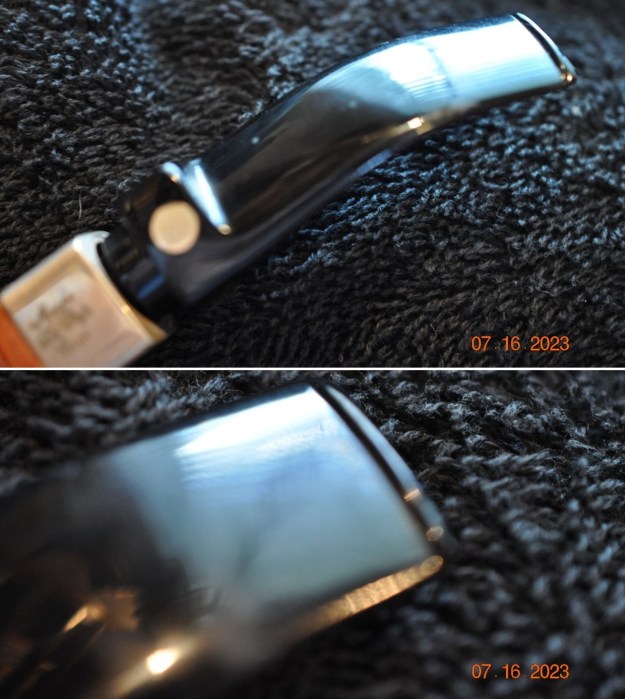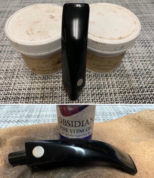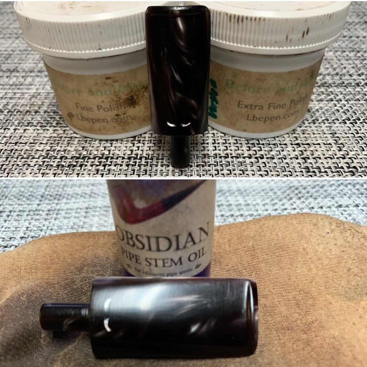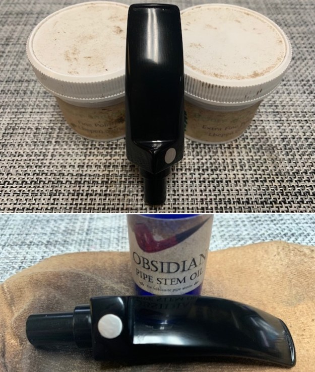I polished the stem with micromesh sanding pads – wet sanding it with 1500-12000 grit pads. I wiped it down with Obsidian Oil after each sanding pad. I know many think it is useless to use the Obsidian Oil on acrylic stems but I find that it is a good lubricant when I am sanding with the micromesh pads. For me it works!