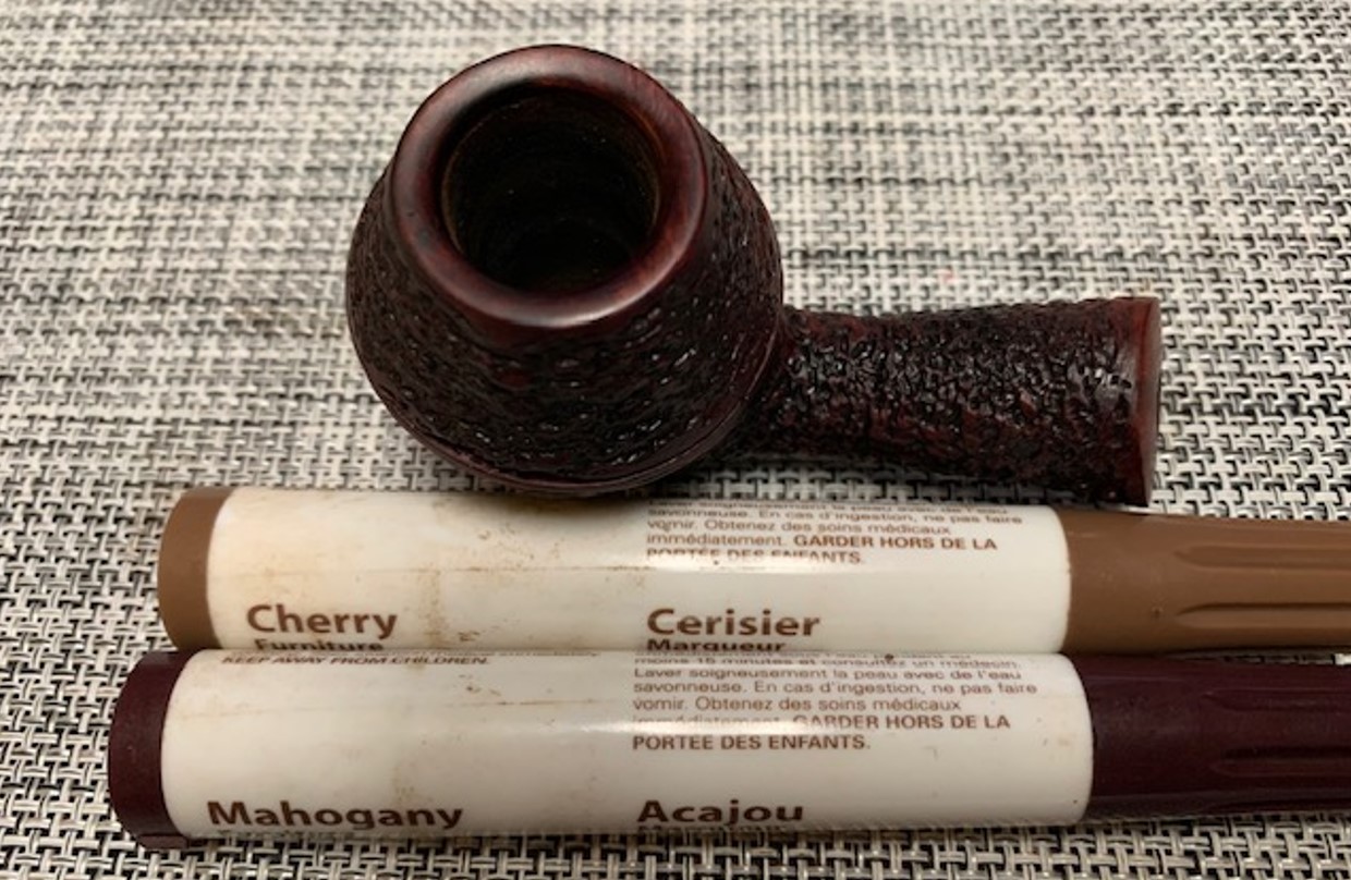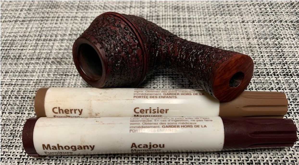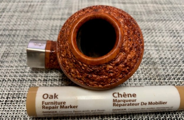 I paused the polishing after the 4000 grit micromesh sanding pad to stain the lighter spots on the bowl and shank. I used an Oak Stain Pen to match the colour of the rest of the bowl and shank. The colour was a perfect match. I touched up the light spots on the shank end, the rim cap and spots around the bowl sides. It looks much better. I finished polishing it with 6000-12000 grit micromesh sanding pads.
