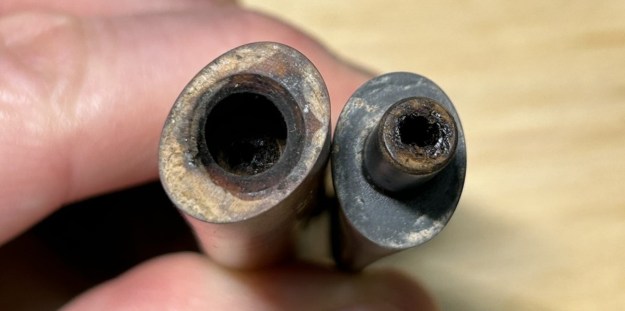 I started to do my normal cleaning procedures on the shank, but the shank was completely blocked with debris and filth. I resorted to using a drill bit (by hand) and a dental tool to clear it out. Just look at the debris! Then I carried on cleaning out the insides of the shank with Q-tips, pipe cleaners, and lemon-infused isopropyl alcohol. I followed that up by cleaning the insides with some dish soap and tube brushes.