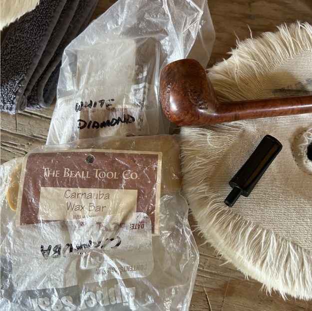 After that, a light application of Before & After Restoration Balm brought out the best in the stummel’s grain. Finally, it went off to the bench polisher. In the photograph, I show White Diamond and carnauba wax, but after taking the photo, I realized that Conservator’s wax would be better suited to the purpose. So that’s what I used.