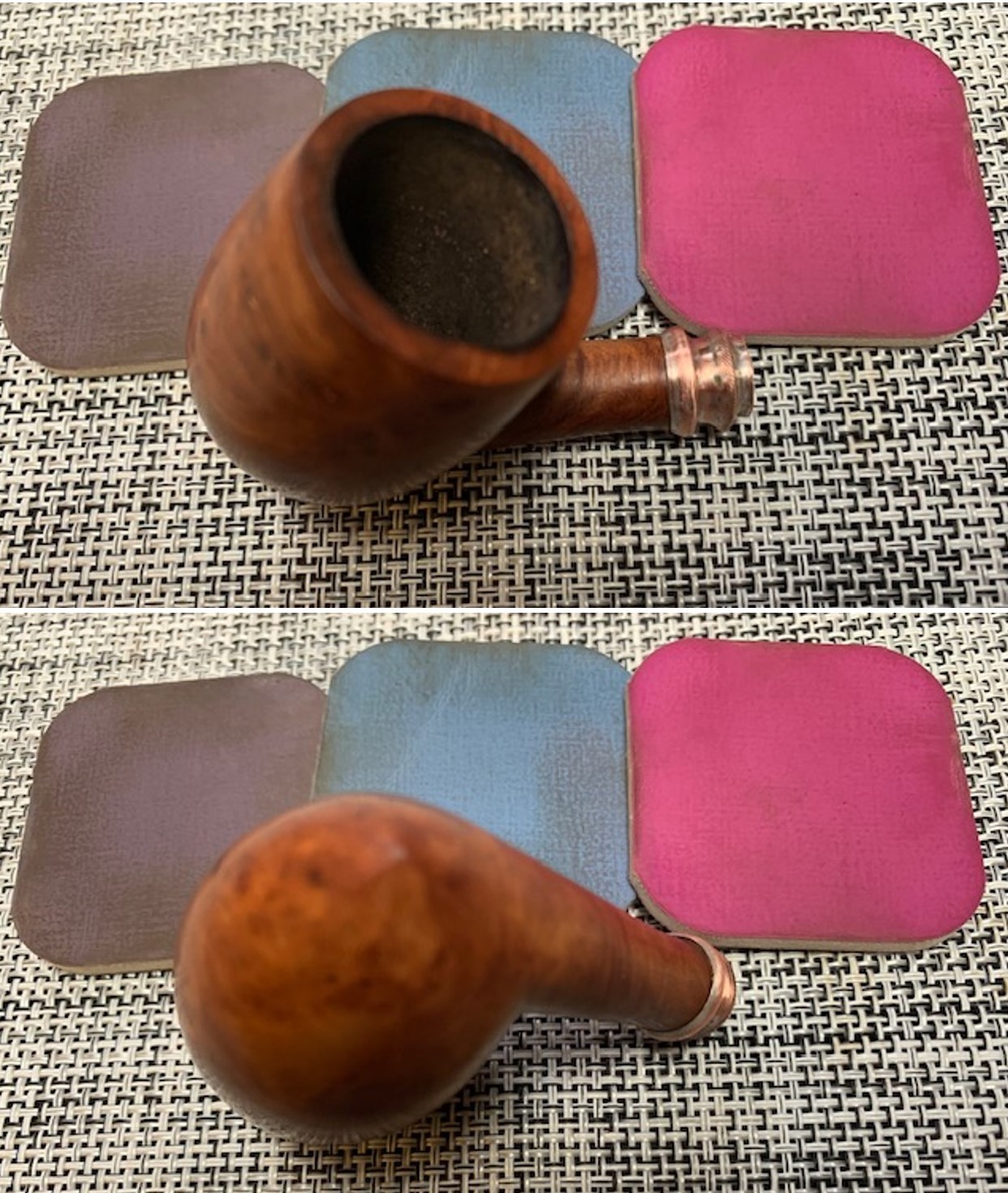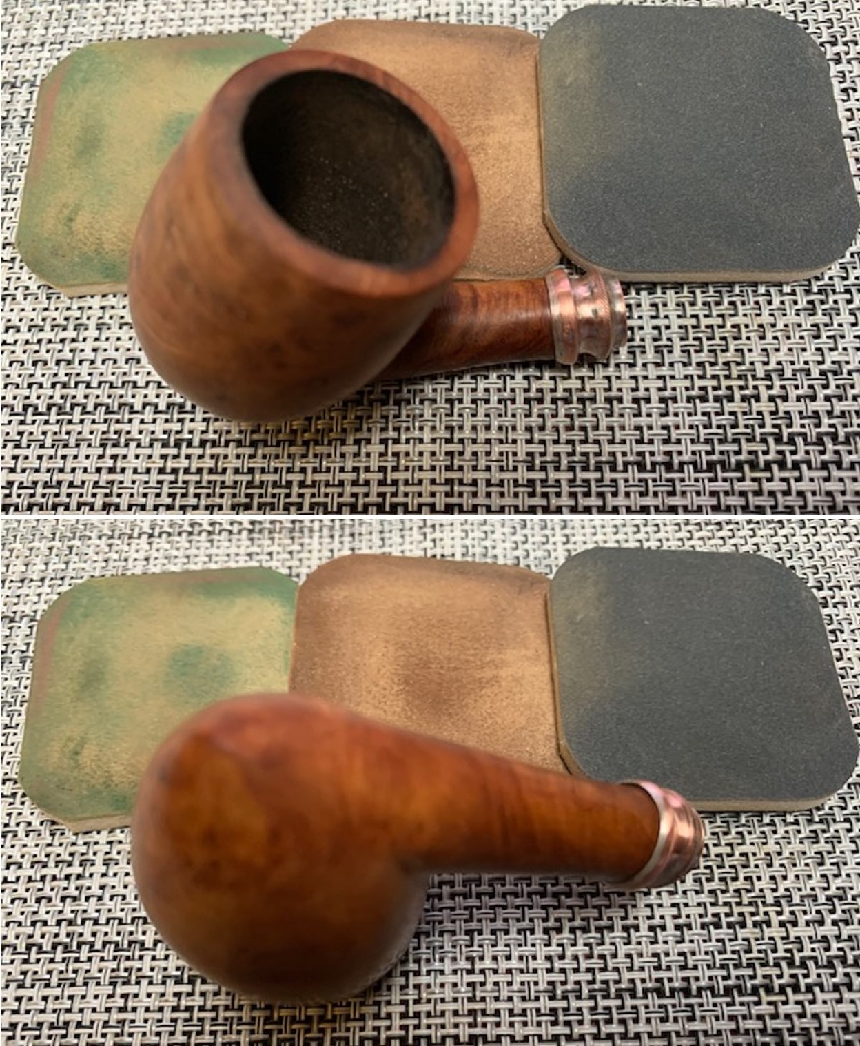 I took photos of the shank sides to try to capture the faint stamping on the briar. If you look closely you can see something there. It is unreadable as it is so faint but on the left side it looks like it possibly reads Choquin [over] A Metz [over] Origine. Because I expected this I can faintly see it. The stamping on the right side is not readable at all.