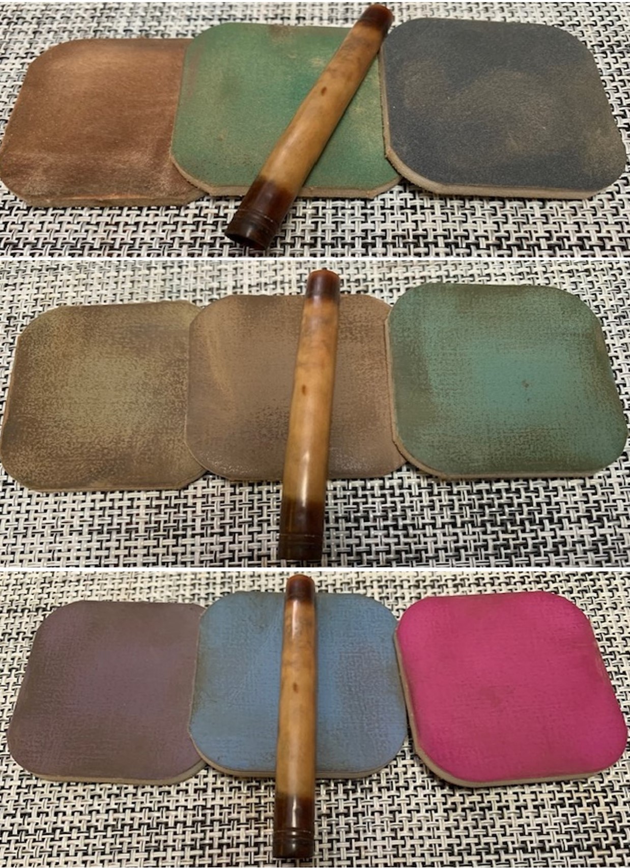 I have found that Before & After Fine and Extra Fine stem polish works well to remove the fine scratches in the horn stems. I rub the Fine Polish on the stem and wipe it off with a paper towel and then repeat the process with the Extra Fine polish. I finish the polishing of the stem down with a final coat of Obsidian Oil and set the stem aside to let the oil absorb. This process gives the stem a shine and also a bit of protection.