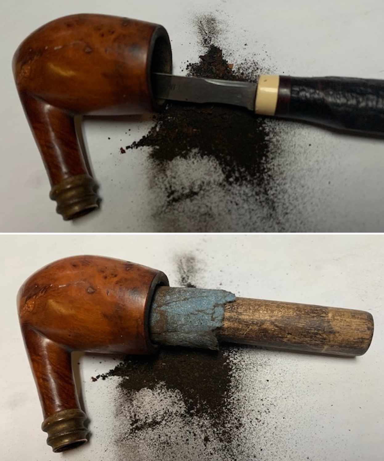 I cleaned out the airway and mortise in the shank, the airway in the wing bone tube and the airway in the horn stem. I used 99% isopropyl alcohol, pipe cleaners and cotton swabs to remove the tars and oils. It was extremely dirty and once cleaned smelled and looked better.