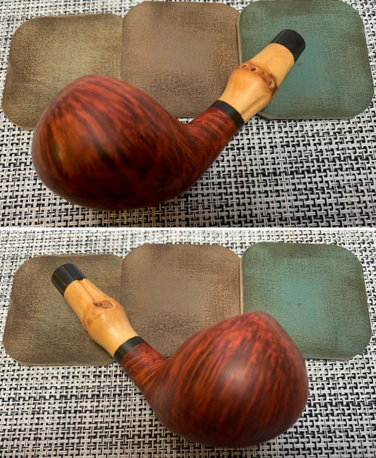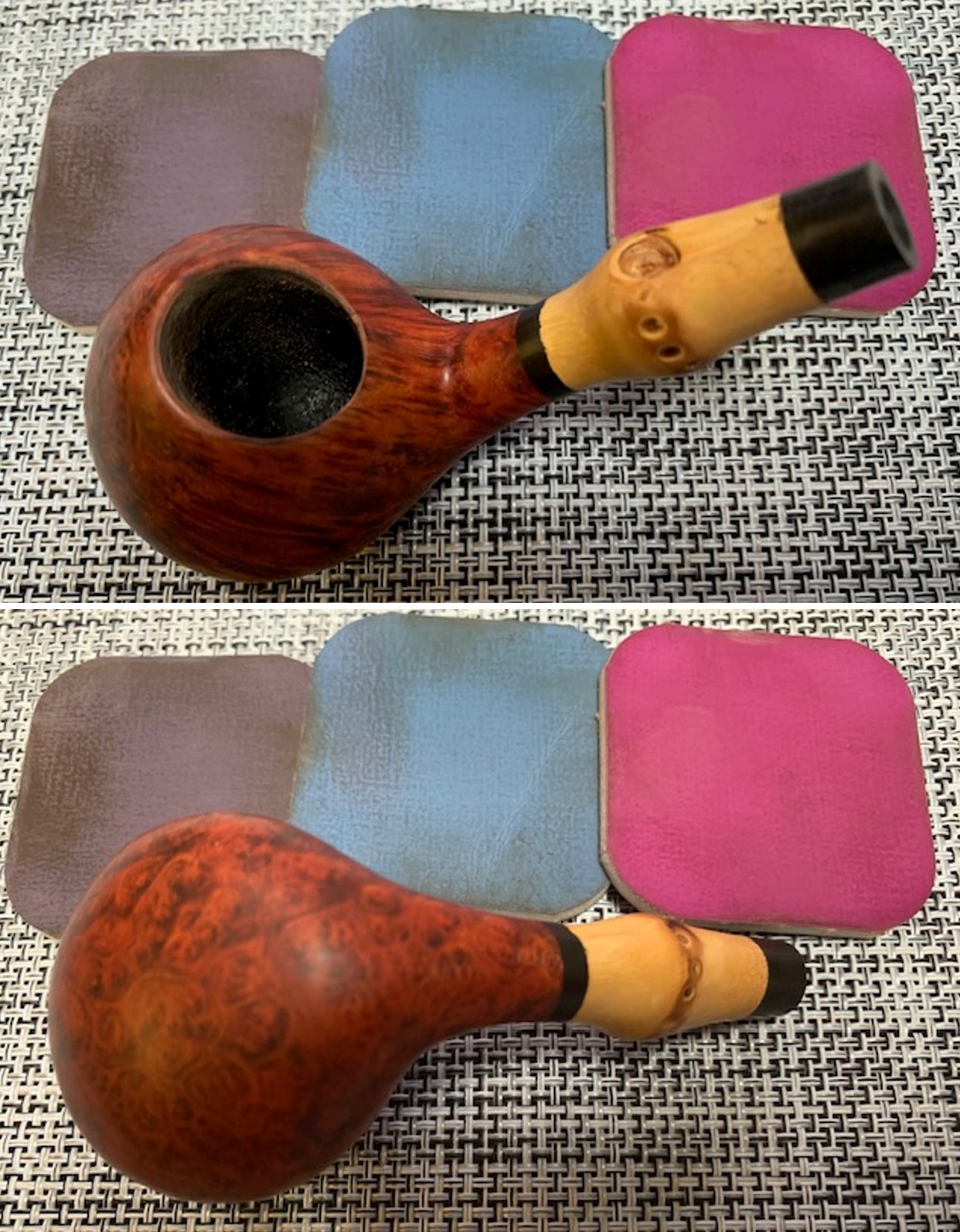 I took a photo of the stamping on the underside of the shank. It is faint and hard to read but with a bright light and lens it reads as noted above. The pipe is quite nice with the stem removed. You can see the flow of the design and the look of the parts.