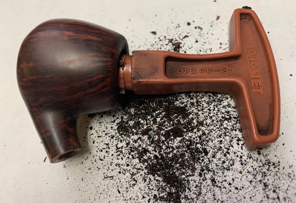 This pipe has a large bowl with a depth of 2 ¾ inch. The chamber has an even layer of thick hard cake. There is a heavy overflow of lava over the rim top surface. The rim top has darkened considerably. The condition of the inner walls of the chamber and the inner edge can be commented upon after the cake has been taken down to the bare briar. The ghost smells in the chamber are very strong.