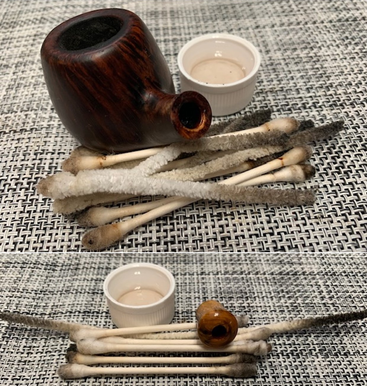I simultaneously cleaned the shank internals with the detergent and hard bristled shank brush. I dried the mortise using paper towels and set the stummel aside to dry out naturally.