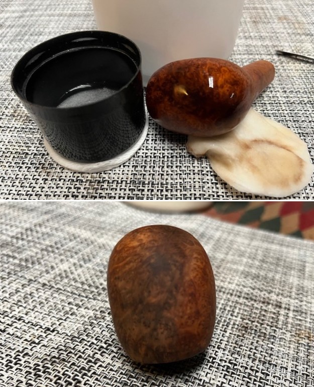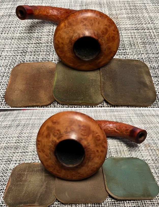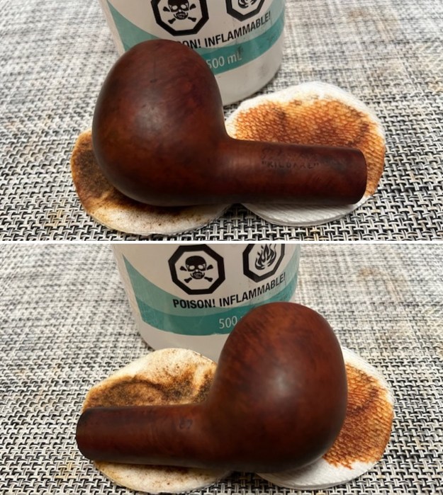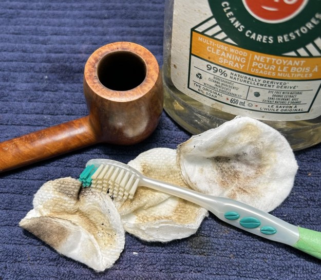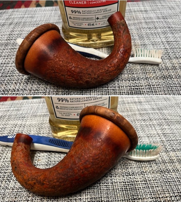 I scrubbed the exterior of the briar with a tooth brush and undiluted Murphy’s Oil Soap. I rinsed it off with warm water to remove the grime and soap. It looked much better and the dust and debris was gone. I dried it with a cotton towel.