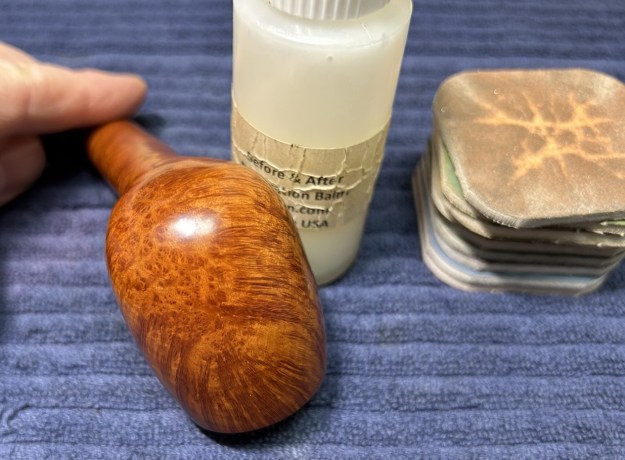 I polished the smooth briar with micromesh sanding pads – wet sanding with 1500-12000 grit sanding pads. I wiped it down with a damp cloth after each pad. The bowl began to take on a rich shine.