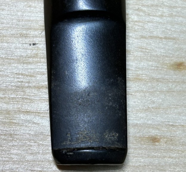 I took a close-up photo of the top of the shank to show the crack. You can see it mid shank. From top end of the crack it spread to the left and the right from the end. It looked as if it had been dropped and the crack spread.