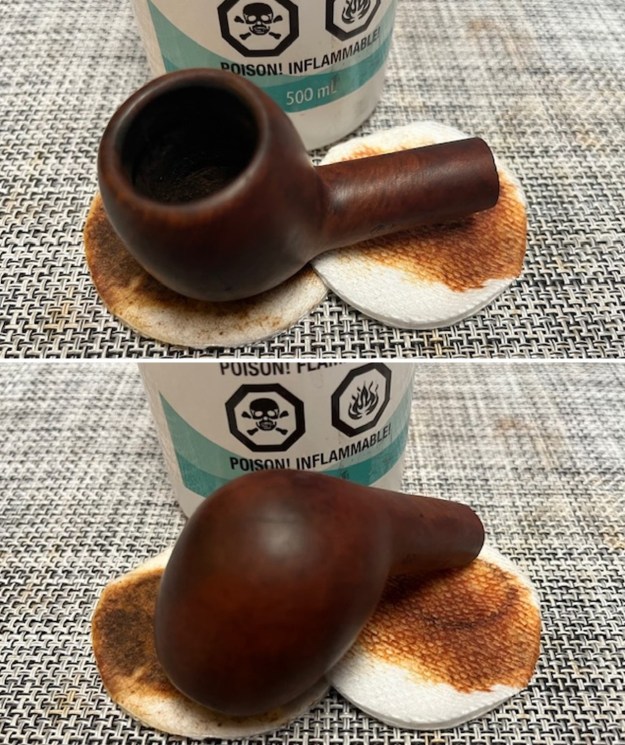I scrubbed out the internals of the pipe with 99% isopropyl alcohol, pipe cleaners and cotton swabs. I cleaned out the airway in the stem as well. I worked on these areas repeatedly until the shank and the airway in all the parts was clean.
