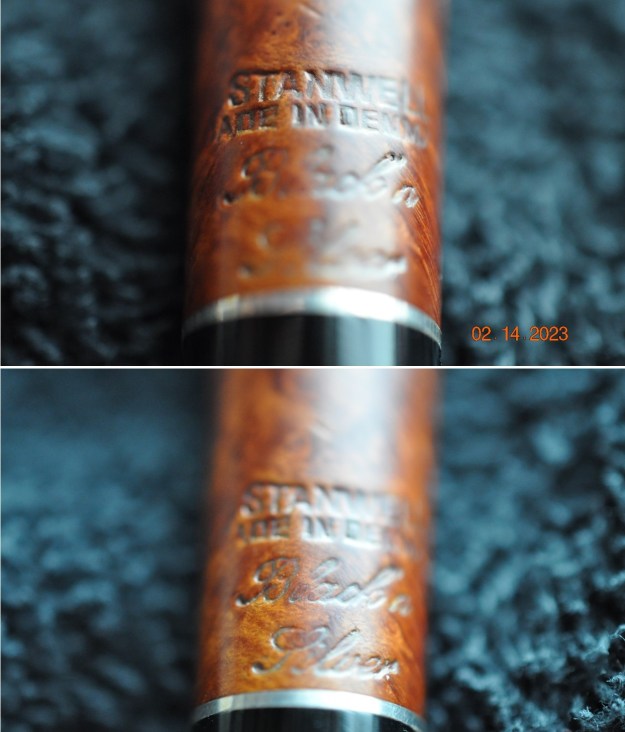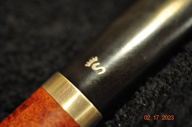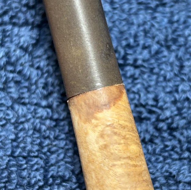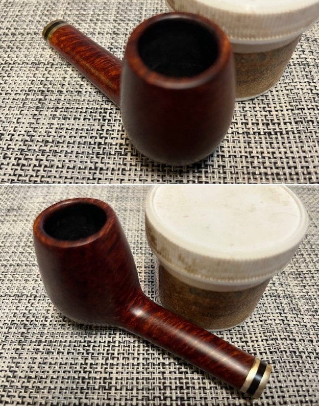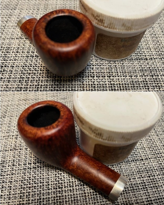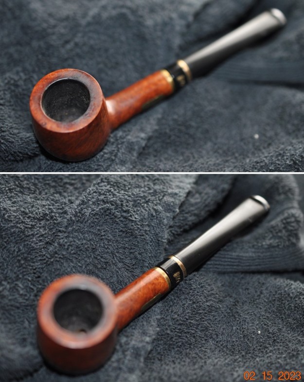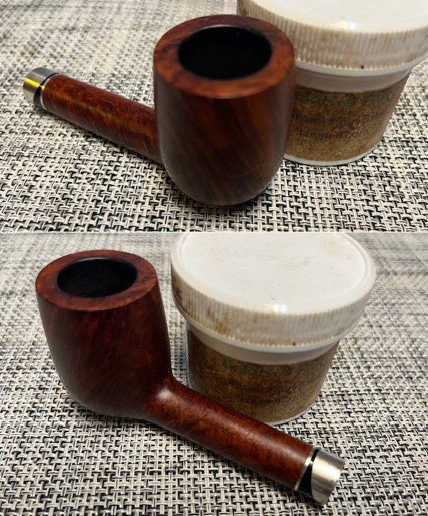 Finally, I applied some Before & After Restoration Balm and buffed it with a microfiber cloth. During the restoration, I noticed some previously repaired damage to the end of the shank. The repair was sound but ugly, so I decided to add a charming band to the shank. I think it suits the pipe quite well and brings a bit of “bling”.