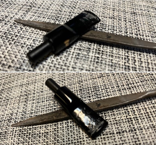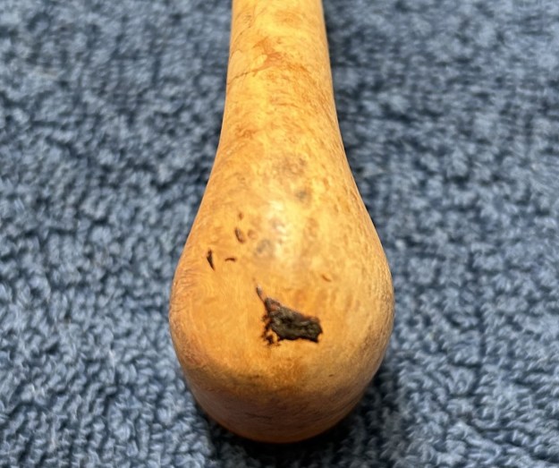 Now for the stummel. I reamed out the bowl to remove the built-up cake and followed that with 220-grit sandpaper taped to a dowel to eliminate as much as I could. I took the chamber down to bare briar, as I wanted to ensure there were no hidden flaws in the wall. Fortunately, there were none.