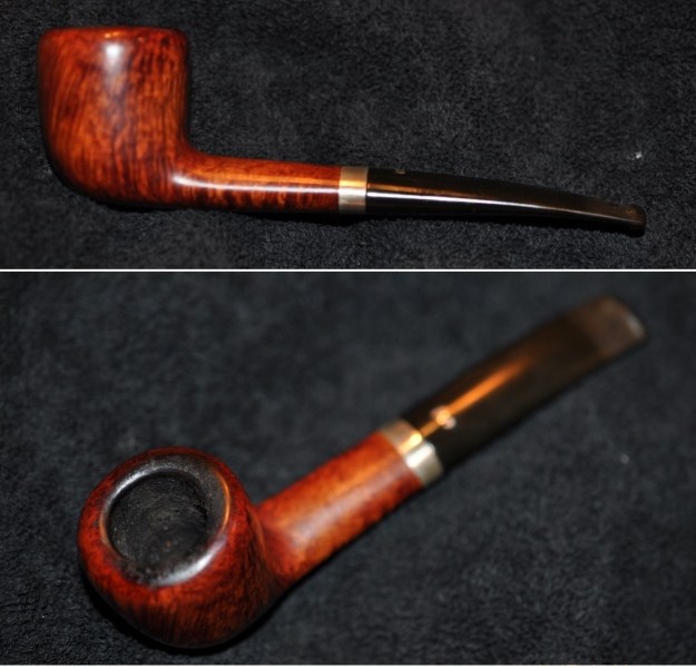 Next on the chopping block is a charming bent Dublin churchwarden (ten inches long), commissioned for a priest friend of mine. He expressly asked for a churchwarden (of course, he did). Fortunately, I had one on hand and I did a nifty restoration job on it. This is just a quick-and-dirty report for two reasons. First, I lost most of the photos I took of the restoration. Grrr. Second, this pipe has literally no markings on it, so I have no information to provide on its origins.