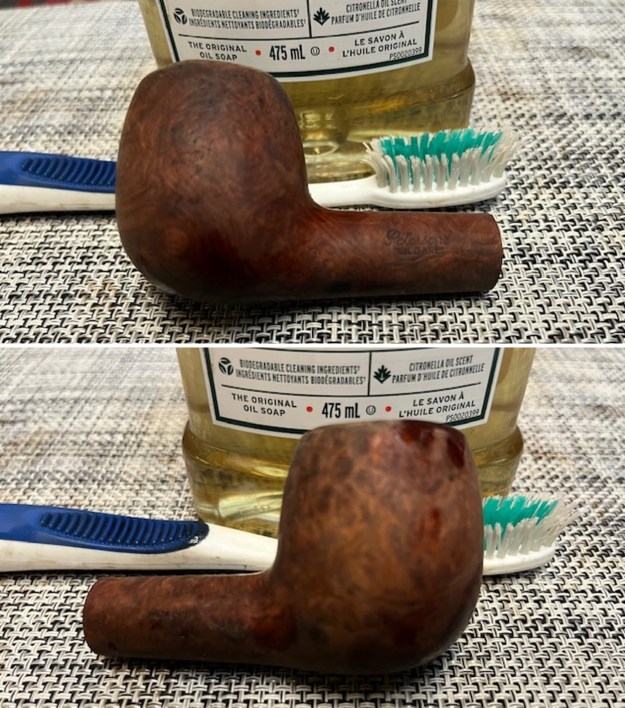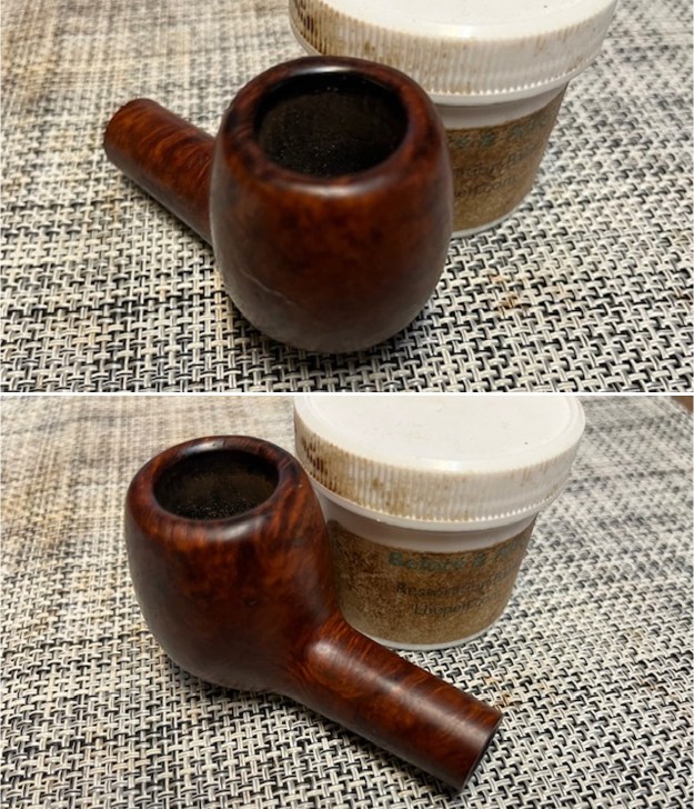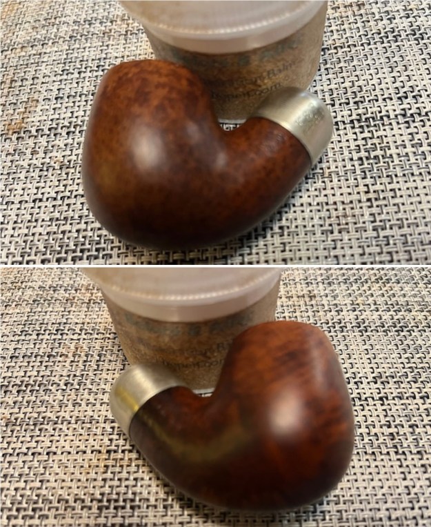 With the topcoat gone I rubbed the bowl down with some Before & After Restoration Balm. I worked it into the briar with my fingertips and into the grooves with a shoe brush. I let it sit for 10 minutes then I buffed it off with a soft cloth. I liked the finish sans shellac much better. What do you think?