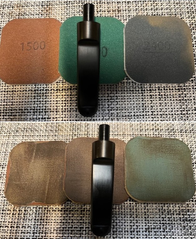 I hand buffed the bowl another time and set it aside. Now it was time to do a little detail work on the stem. It was very clean and there were no marks on the surface on either side. I ran a pipe cleaner through it to remove the dust and worked over the sharp edge of the button with my Obsidian Oil cloth to remove the dust that had collected in that spot on both sides. It looks great.