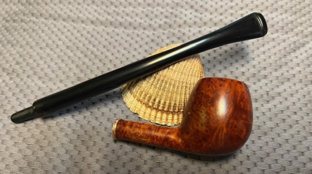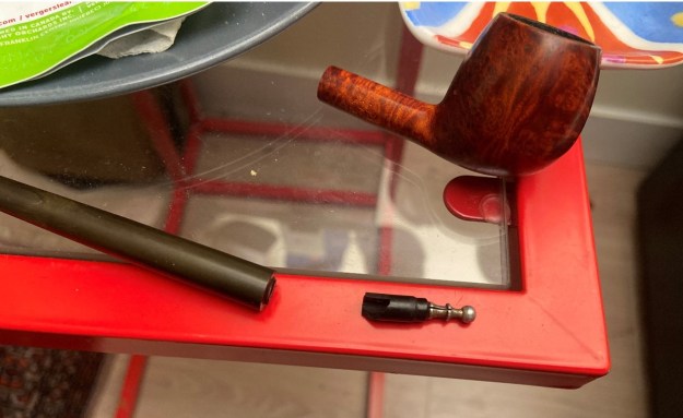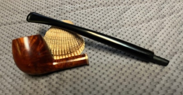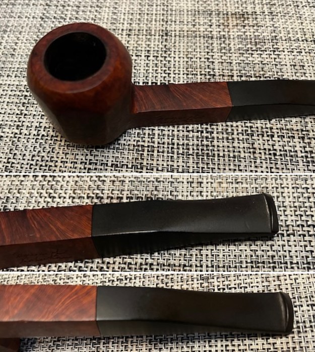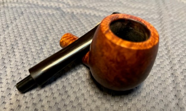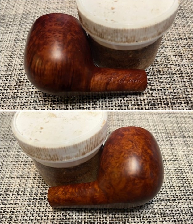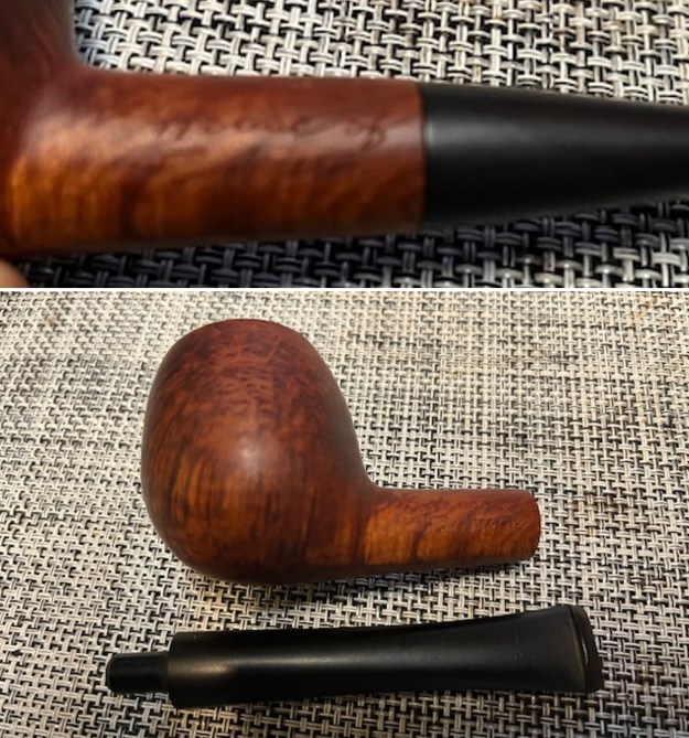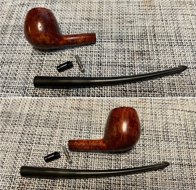 I took a photo of the engraving on the left side of the shank. It is clear and reads as noted above. I also took the stem off the pipe and took a photo of the parts to give a sense of the proportions of the pipe. It is a beauty.