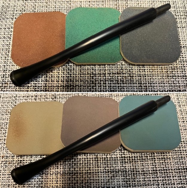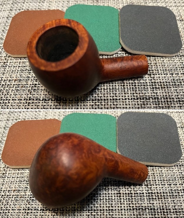 I polished the bowl and shank with micromesh sanding pads – dry sanding with 1500-12000 grit pads. I wiped the bowl with a damp cotton pad after each sanding pad. The surface began to take on a nice shine.