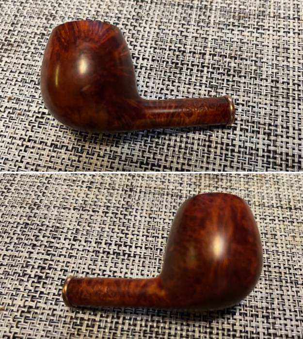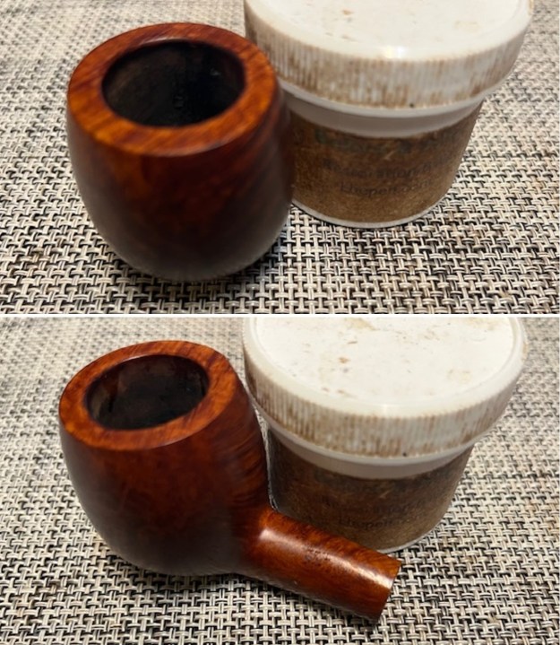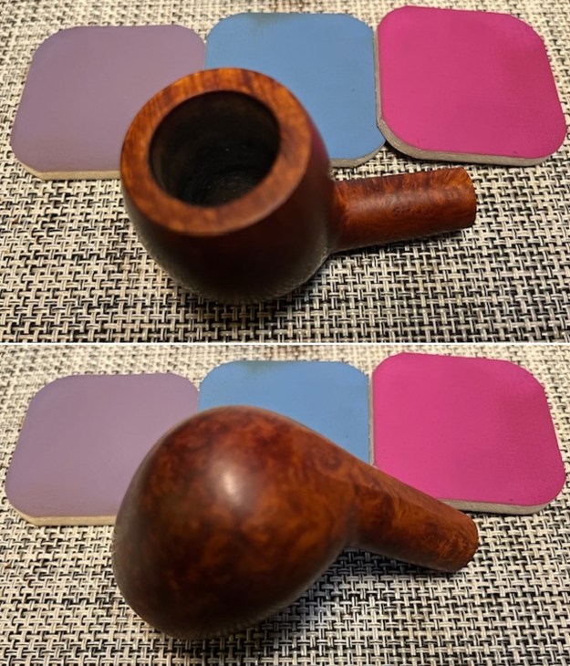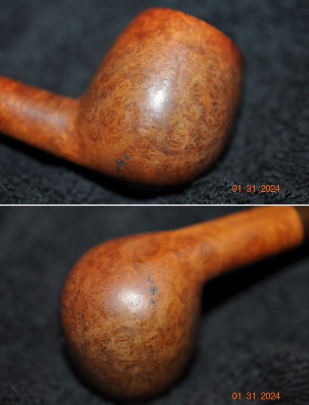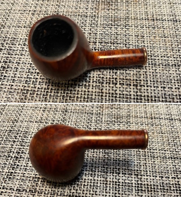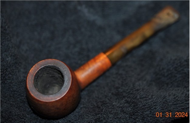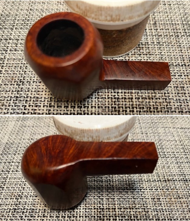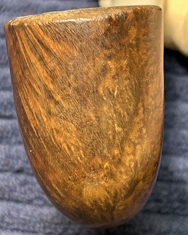 I took a photo of the bowl and rim top to show how well it had cleaned up. There is some rim darkening but you can see the interesting grain on the top of the bowl. The stem tooth marks and chatter are very light.