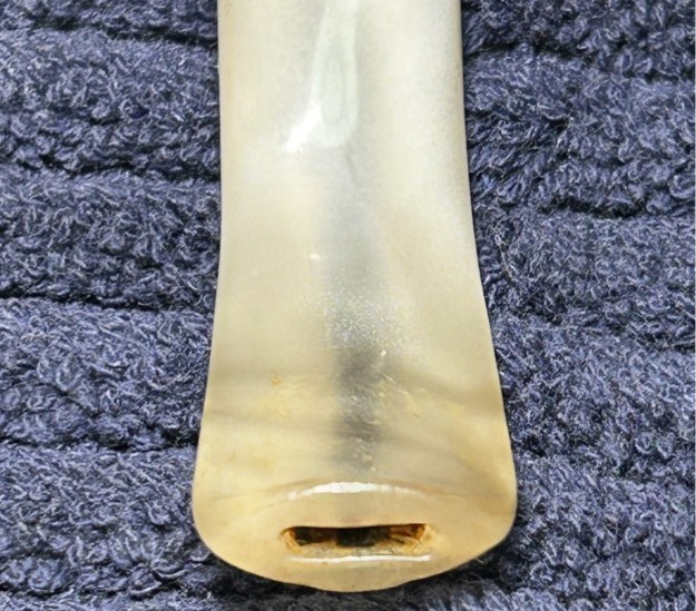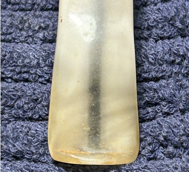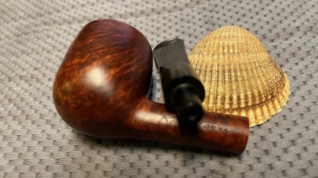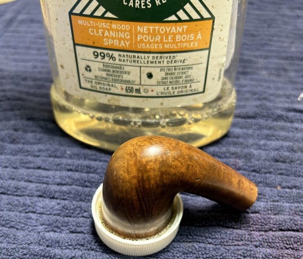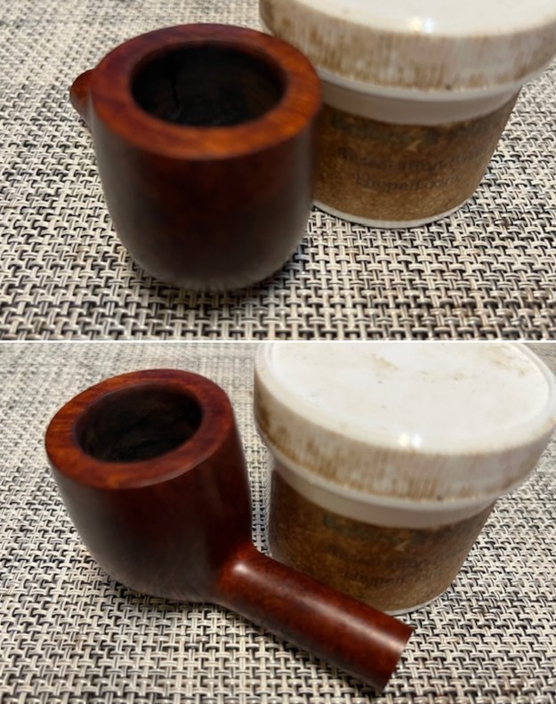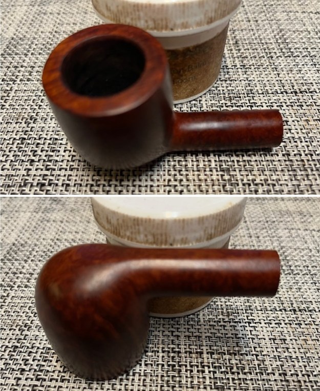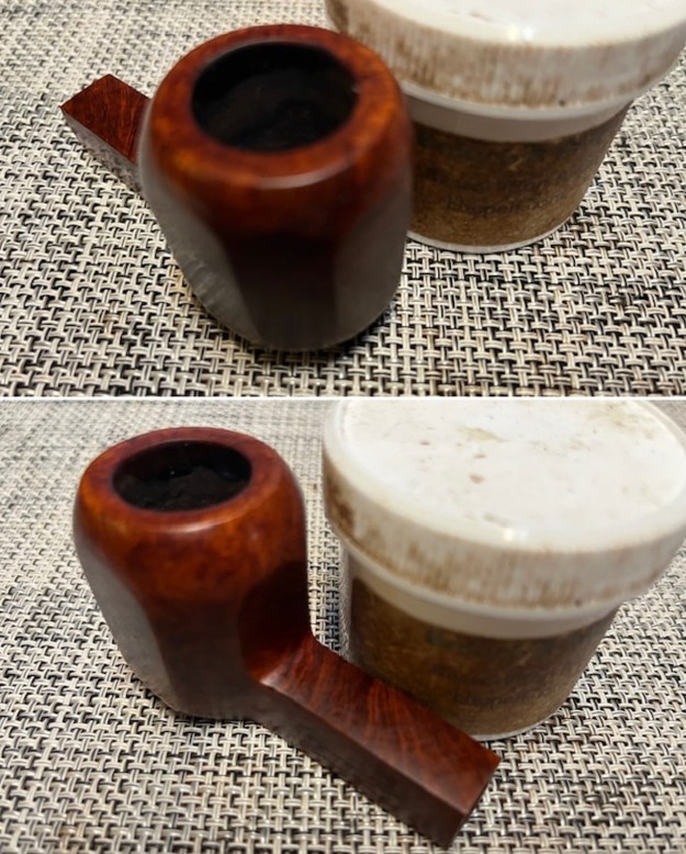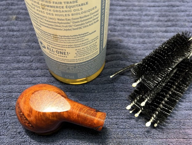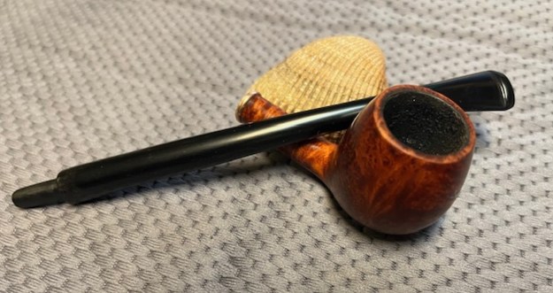 I took a photo of the bowl and rim top to show how well it had cleaned up. There is some rim darkening but you can see the interesting grain on the top of the bowl. The stem tooth marks and chatter are very light.