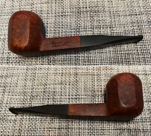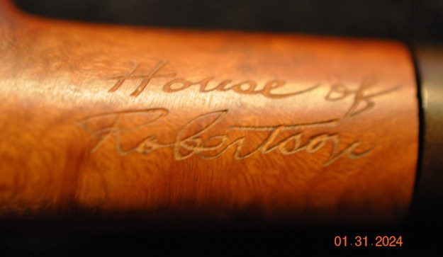 “House of Robertson” was in business for many years, but alas, closed their doors in 1999. They were located in Boise, Idaho. They are noted for making rather large and interesting pipes. Thayne Robertson was a Master Mason, AF & AM, and started the shop about 1947 and his son Jon started working there in 1970 when he finished college, along with Thayne’s daughter. Thayne and his son started making the big pipes at that time, and made them together until 1987 when Thayne passed away. Jon kept the store and his sister moved on to other things. The House of Robertson appears to have closed around 1999 (https://pipedia.org/wiki/Robertson).