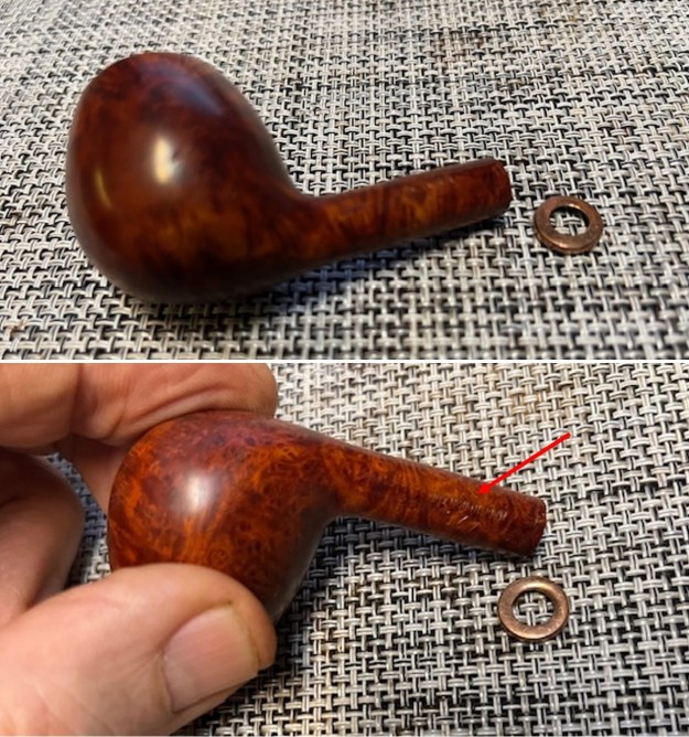 Jeff also took a photo of the nicks in the shank on the top right side of the square shank. The clean up had shrunken them a bit but they are still visible. My plan was to leave them as part of the story of the pipe’s journey.
