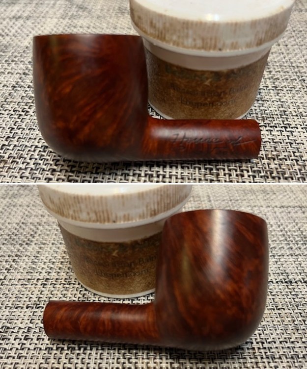 The photos of the sides and heel of the bowl show some stunning and unique grain all around the pipe. The finish makes the grain really stand out on the bowl and shank.