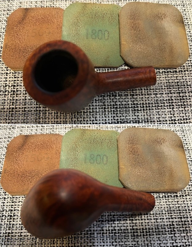 I started my work on the pipe by polishing the briar with micromesh because it was in such good condition. I polished it with 1500-12000 grit micromesh sanding pads. I wiped the bowl down after each sanding pad with a damp cloth.