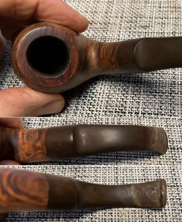 I took a photo of the rim top and the stem to show their condition once it arrived in Canada. Jeff was able to clean up the cake and the lava overflow that was shown in the rim and bowl photos above. The rim top and the inner edge of the bowl looked very good – just some darkening. The stem looked better and the tooth marks and chatter on both sides near the button.