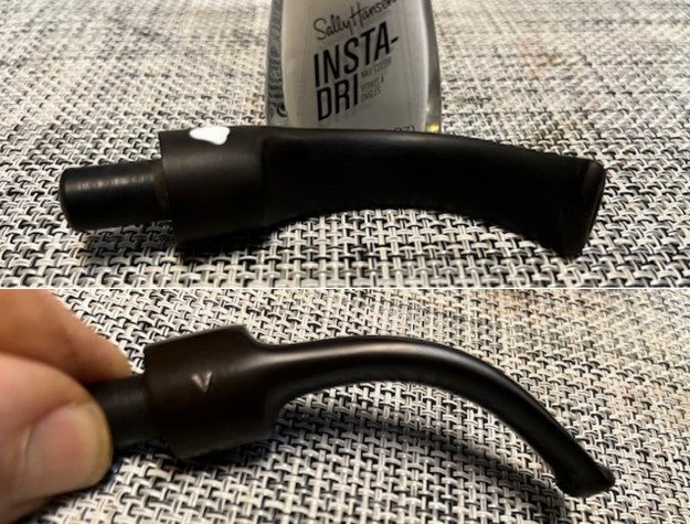 I polished it with Before & After Pipe Stem Polish – both Fine and Extra Fine. I gave it a coat of Obsidian Pipe Stem Oil. It works to protect the stem from oxidizing. I set it aside to dry.