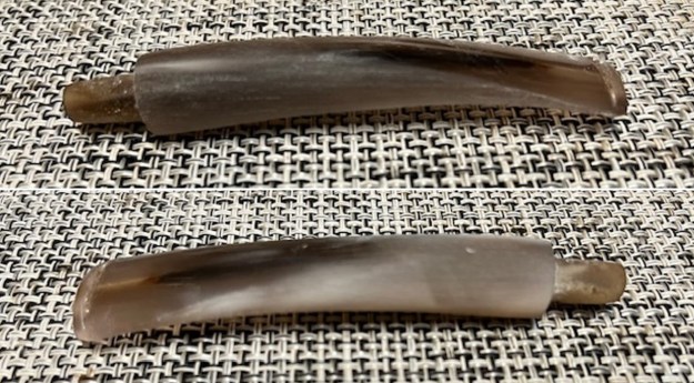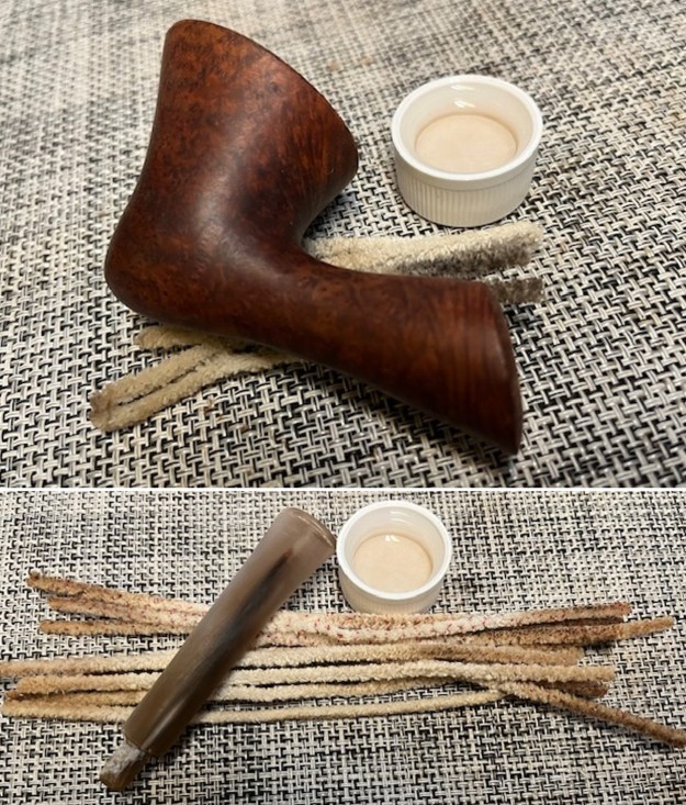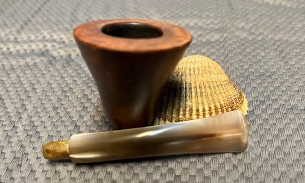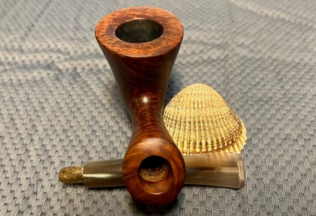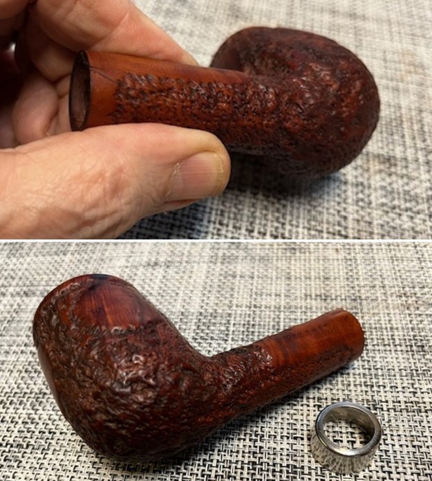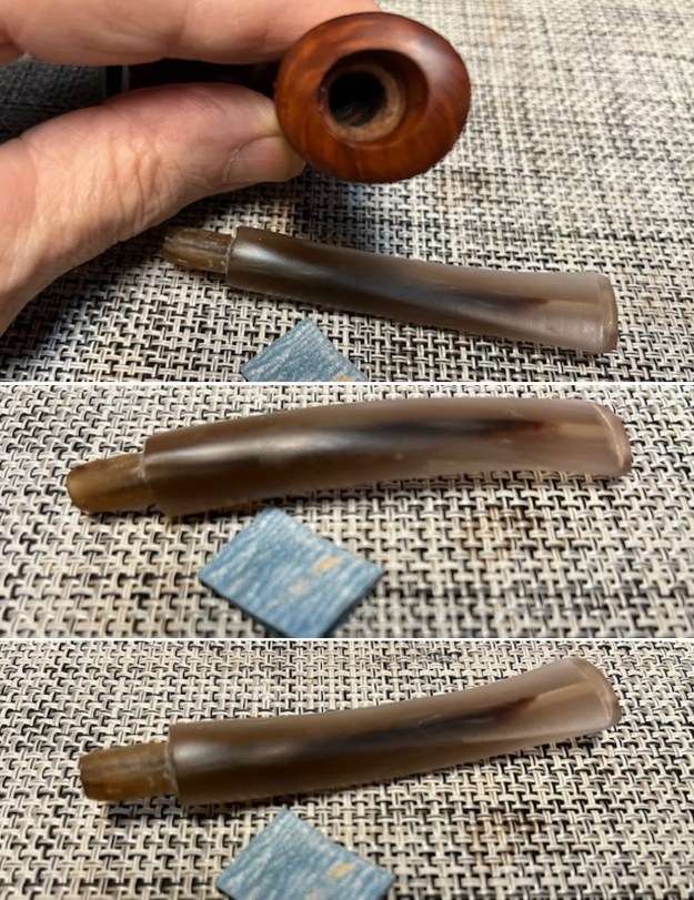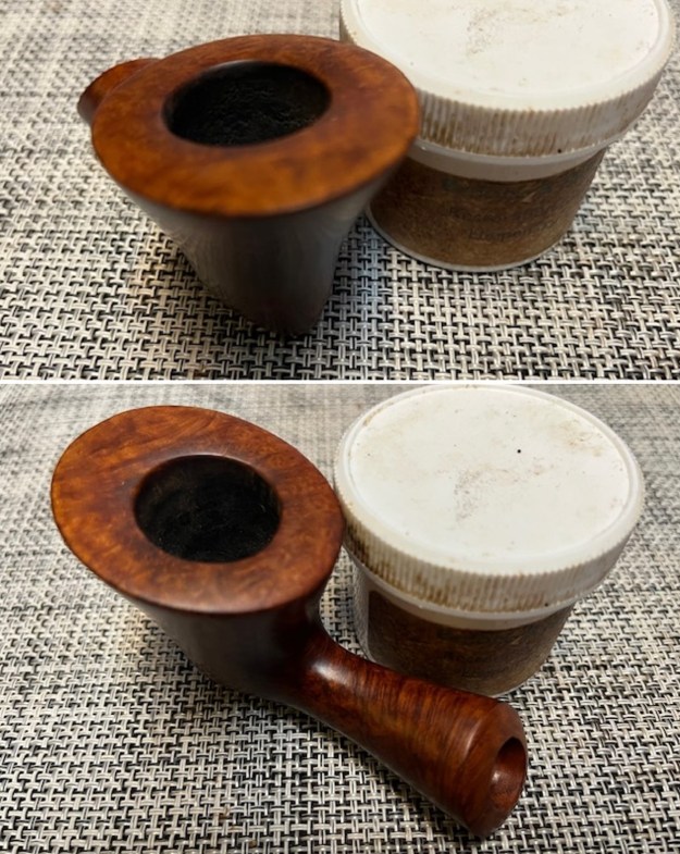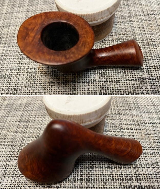 I took a photo of the bowl and rim top to show how well it had cleaned up. There is some rim darkening but you can see the interesting grain on the top of the bowl. The stem tooth marks and chatter are very light.