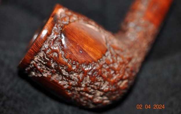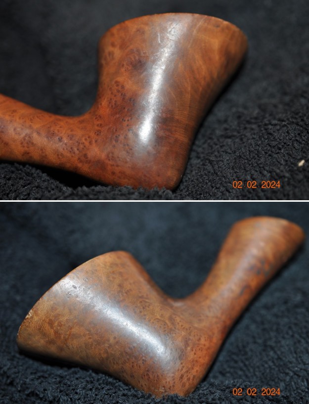 The photos of the sides and heel of the bowl show some stunning and unique grain all around the pipe. The finish makes the grain really stand out on the bowl and shank.
