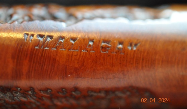 I took a photo of the engraving on the left side of the shank. It is clear and reads as noted above. I also took the stem off the pipe and took a photo of the parts to give a sense of the proportions of the pipe. It is a beauty.