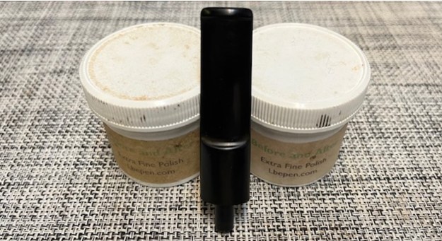 I polished light tooth marks and chatter out of the stem with micromesh sanding pads – dry sanding with 1500-12000 grit pads. I wiped the stem down after each sanding pad with Obsidian Oil.