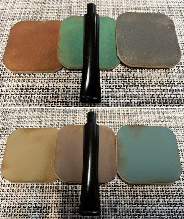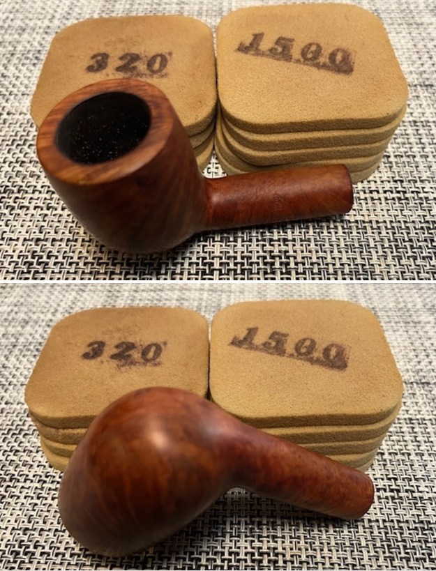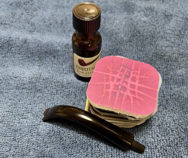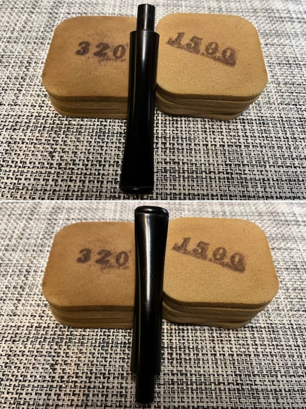 I set the bowl aside and polished the vulcanite with micromesh sanding pads – 1500-12000 grit pads. I wiped it down with a damp cloth after each sanding pad. I used Before & After Pipe Polish – both Fine and Extra Fine to further polish the stem.