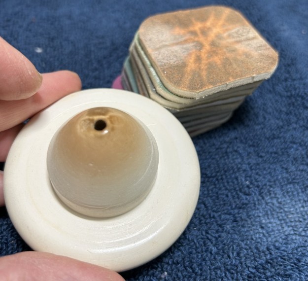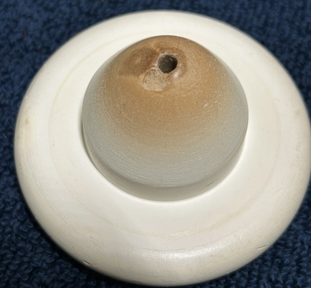 He took photos of the pipe’s bowl and rim top to show the cake in the bowl and the lava coat overflowing onto the top. It is another dirty pipe. He also took photos to capture the light tooth marks on the top and underside of the stem near the button.