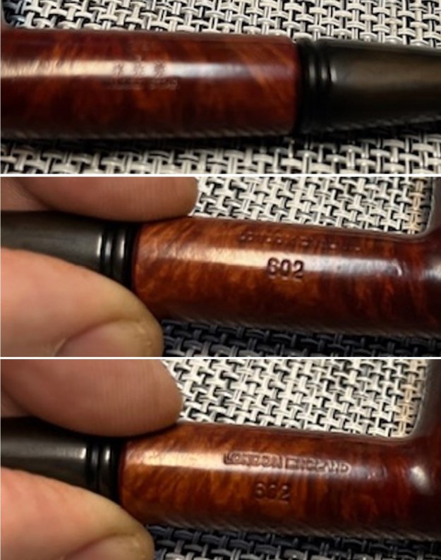 I took photos of the stamping on the left and right sides of the shank. The stamping is clear and readable. I took a photo of the pipe with the stem removed to show the overall look of stem, tenon and profile of the pipe.