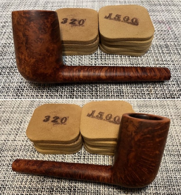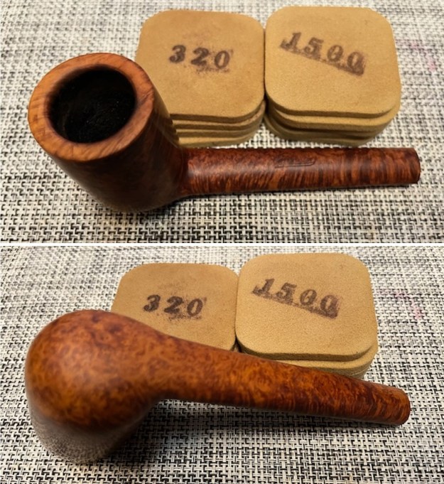 I sanded the briar rim top and the sides of the bowl with 320-3500 grit sanding pads. I wiped the bowl down with a damp cloth after each pad. By the time I finished with the 3500 grit pad the briar had taken on a rich glow.