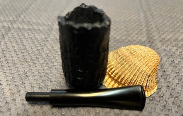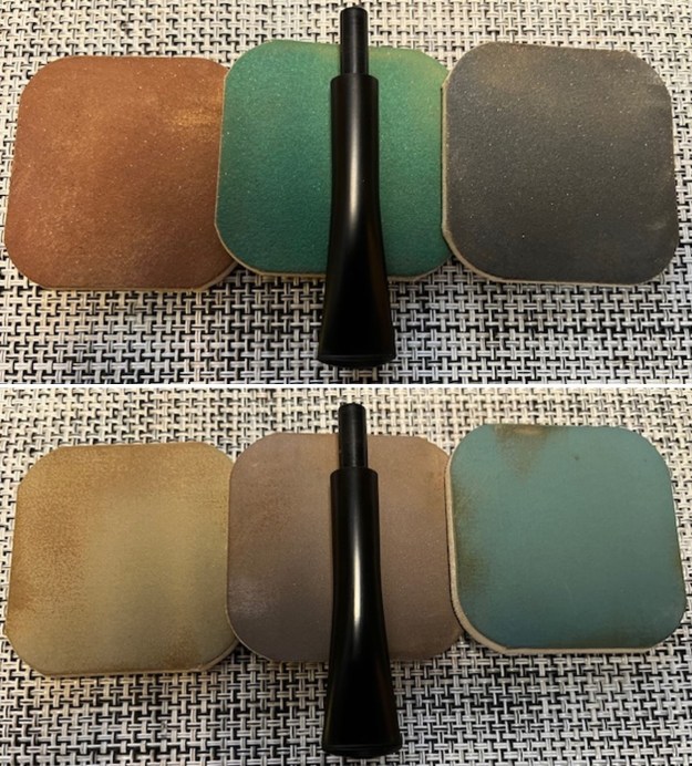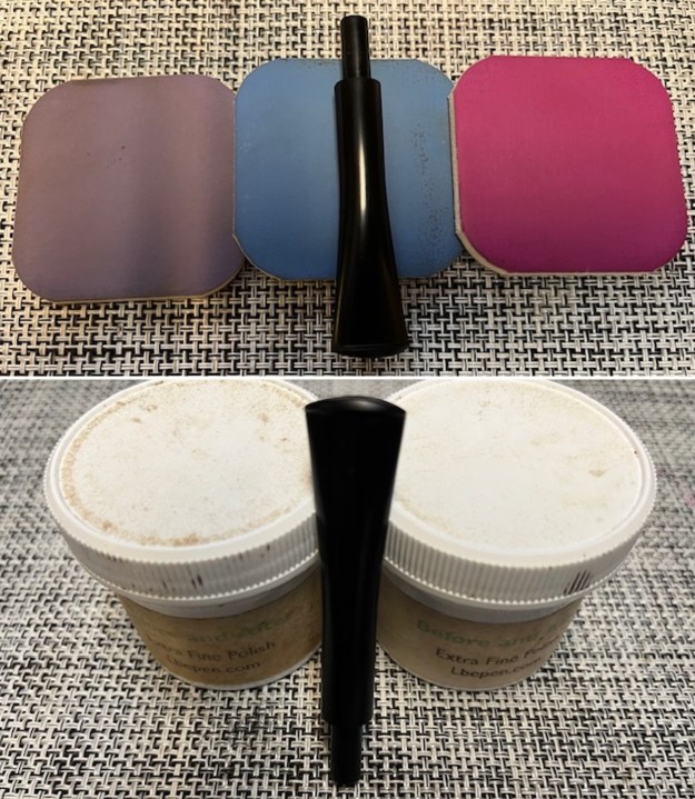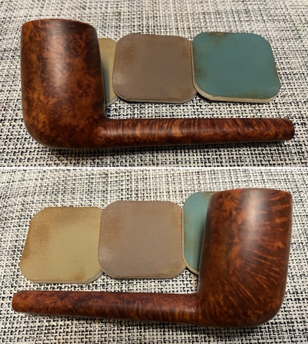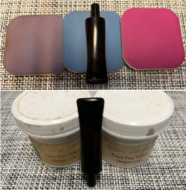 I polished the vulcanite with micromesh sanding pads – 1500-12000 grit pads. I wiped it down with a damp cloth after each sanding pad. I used Before & After Pipe Polish – both Fine and Extra Fine to further polish the stem.