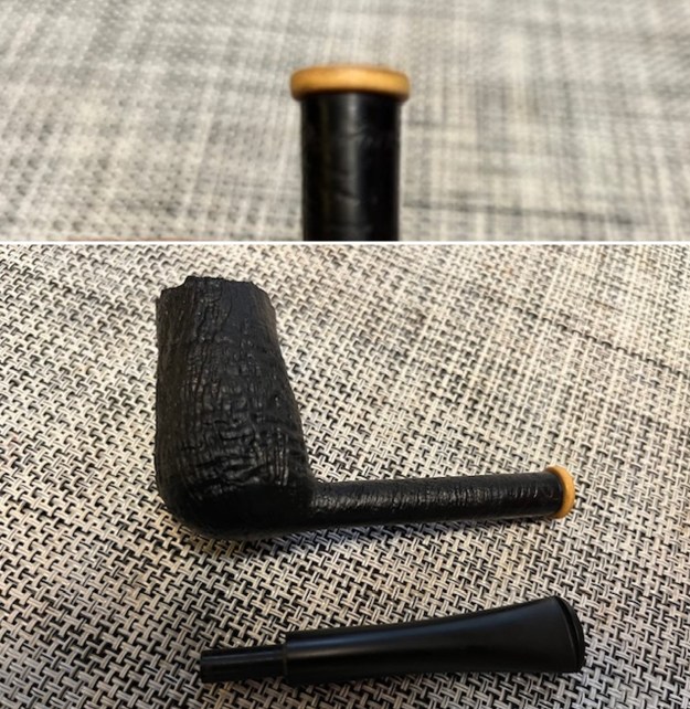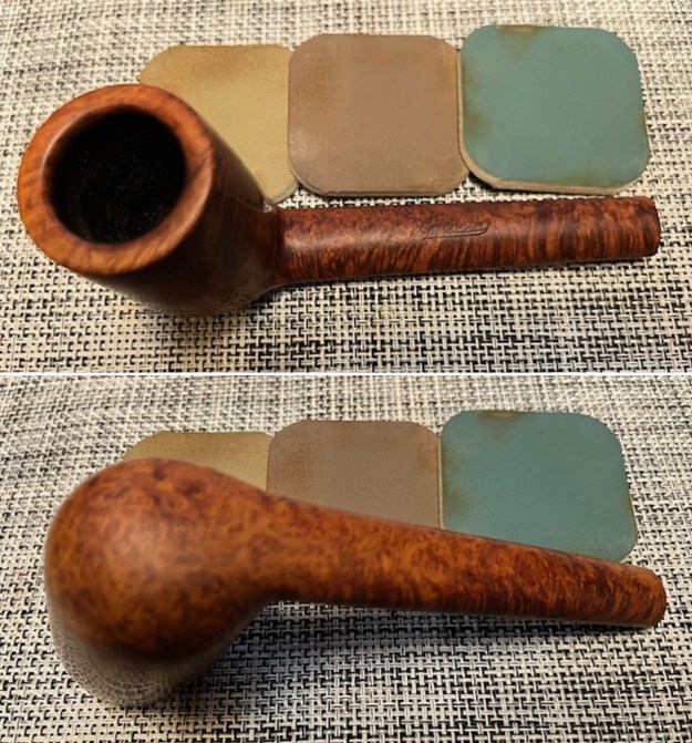I took photos of the stamping on the top and undersides of the shank. The stamping is clear and readable (though fainter on the underside). I took a photo of the pipe with the stem removed to show the overall look of stem, tenon and profile of the pipe.