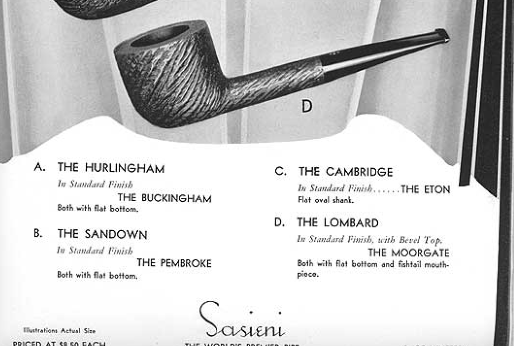 Gustave Fischer was pipe maker for “The House of Fischer’, which was located in Orchard Park, NY, near Buffalo. The Fischer family apparently made pipes for six generations, starting in Germany and continuing in the United States until the 1970s. Their literature from 1956 said that all their briars were bench made. They also made meerschaums, but some confusion is caused by the fact that there was also Gustav Fischer, who made meerschaum pipes in Boston during roughly the same period.