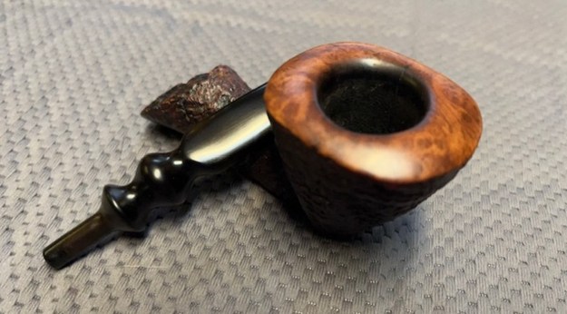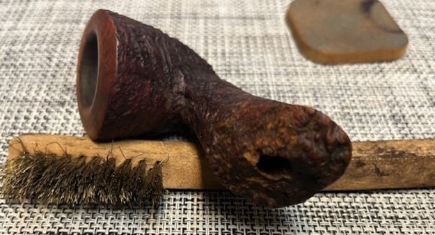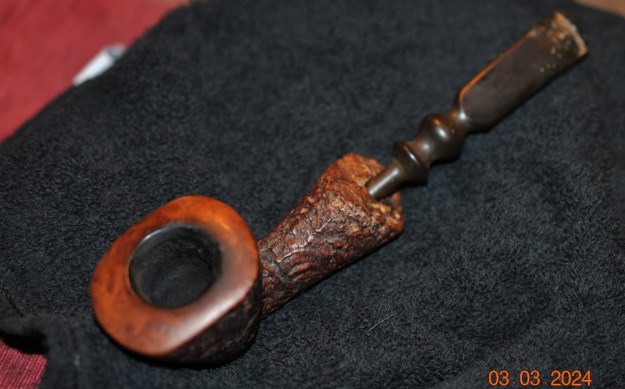I went over the sandblast finish on the bowl and shank with a brass bristle wire brush to knock off the debris in the grain. Once finished it looked much better. It was ready for the next work on the rim and shank end.