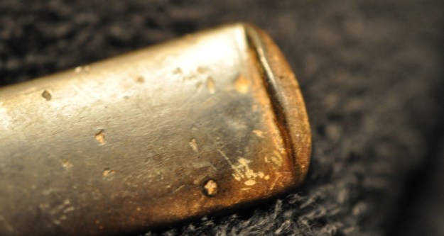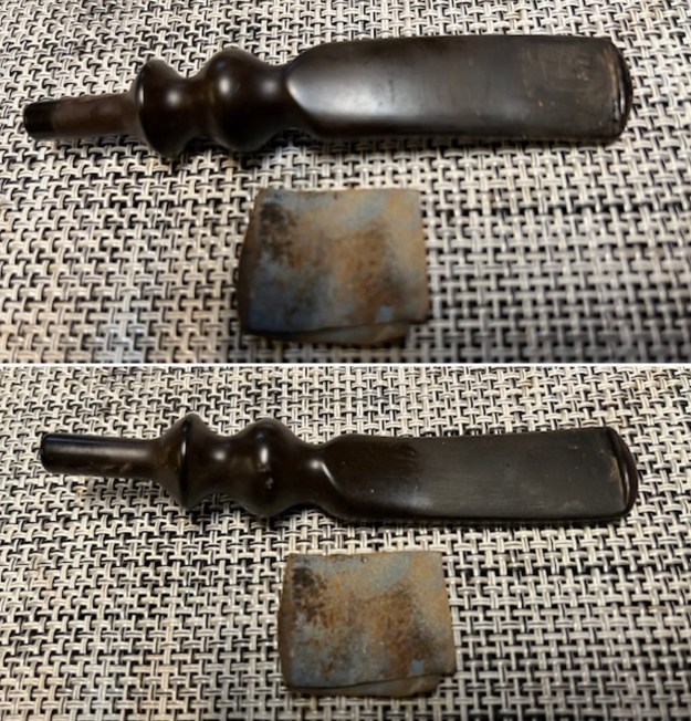 I worked over the plateau shank end with the wire brush to prepare it for the traditional black stain. I touched it up with a black stain pen making sure that all the grooves and surfaces were evenly stained. Once the stain cured I sanded it with a 320 grit sanding pad to knock the stain off the high spots on the plateau to give a sense of contrast to the plateau. It looked very good once I had finished doing that.