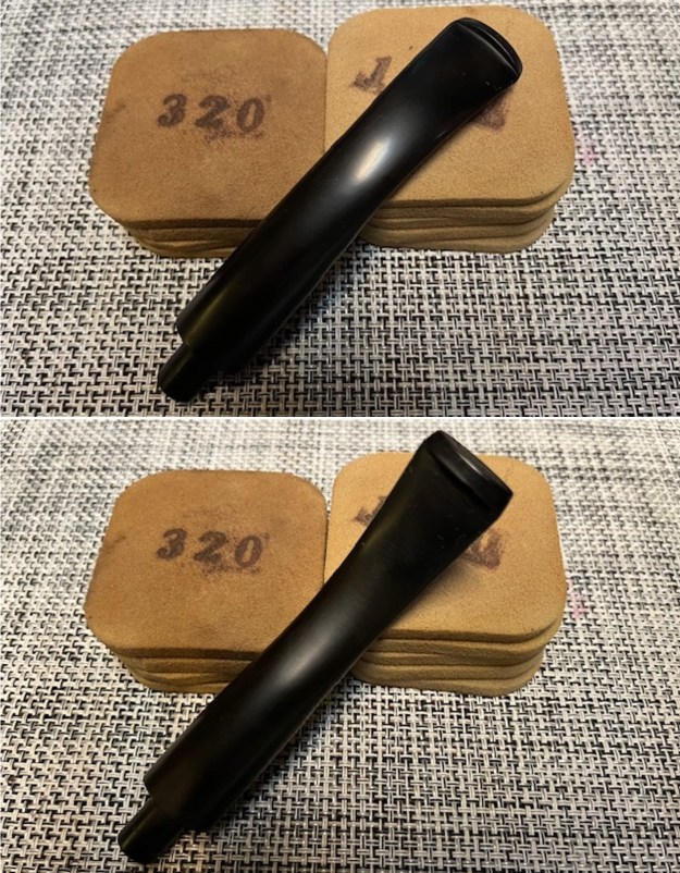 I polished the stem with micromesh sanding pads – wet sanding with 1500-12000 grit sanding pads. I wiped it down after each sanding pad with some Obsidian Oil. I finished polishing it with Before & After Pipe Stem Polish – both Fine and Extra Fine and buffed it off with a cotton cloth.